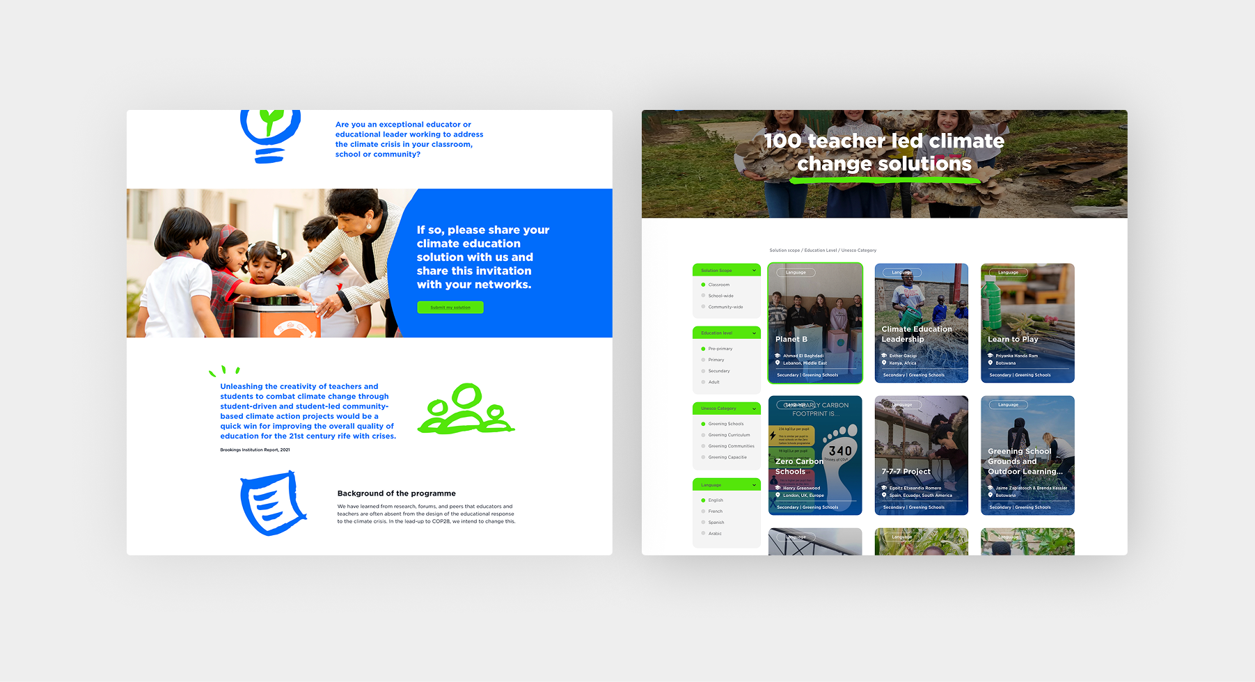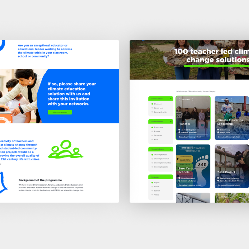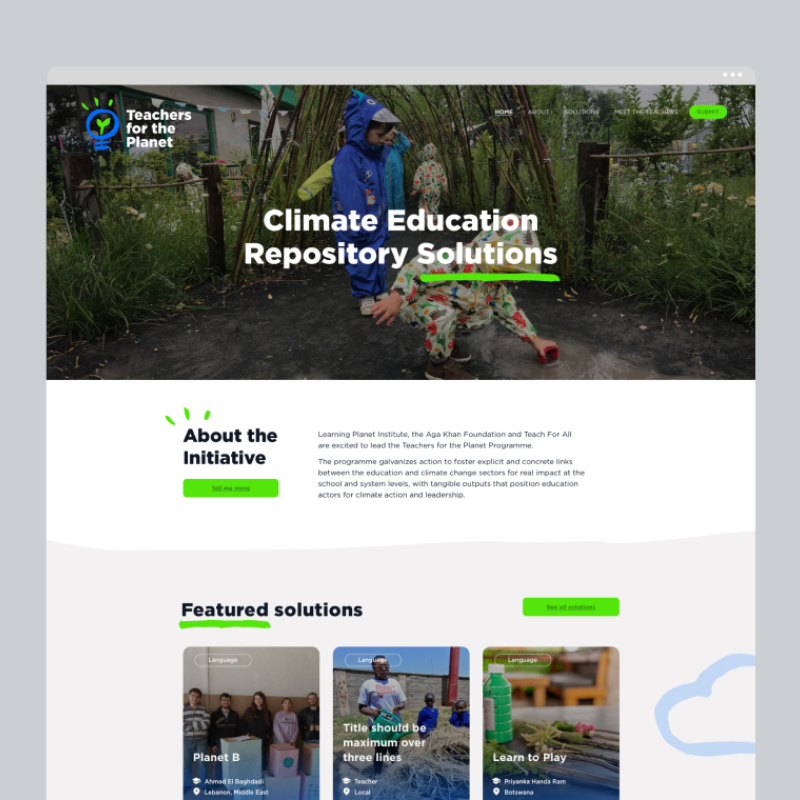Teacher for the Planet é uma plataforma simples e intuitiva, desenvolvida com uma linguagem visual vibrante e a integração de elementos gestuais que reforçam a proximidade e a empatia com o utilizador. O projeto pretende assim transmitir uma dimensão mais humanista, promovendo uma experiência envolvente e acessível.